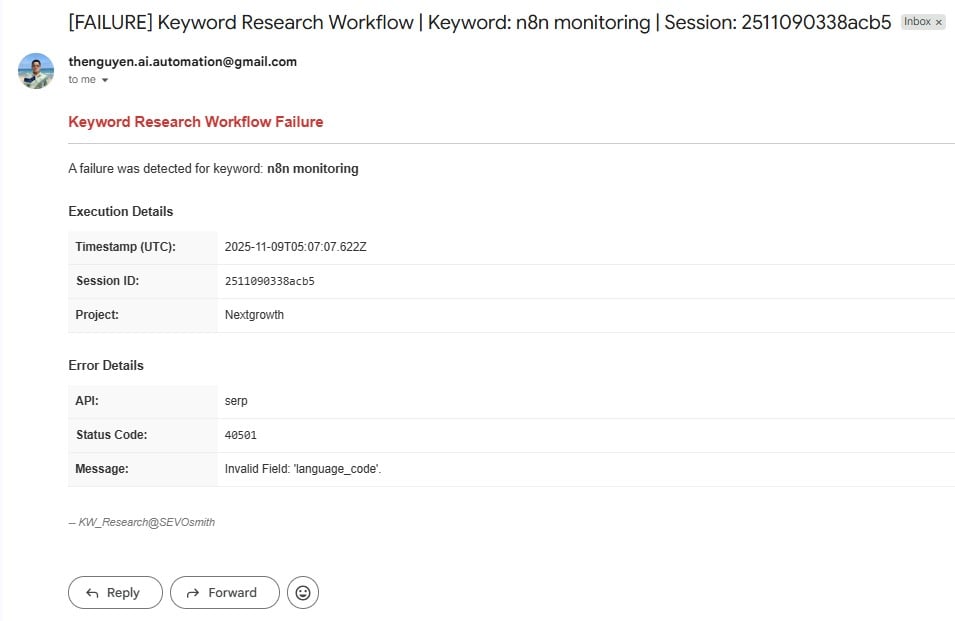 🔍 Production-Grade Resilience & Error Handling: A workflow that breaks on a single failed API call isn't "Fully Automated." Every API call is individually validated. Any failure is instantly caught, logged, and triggers an email notification—without halting the entire process.